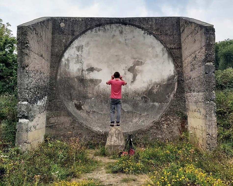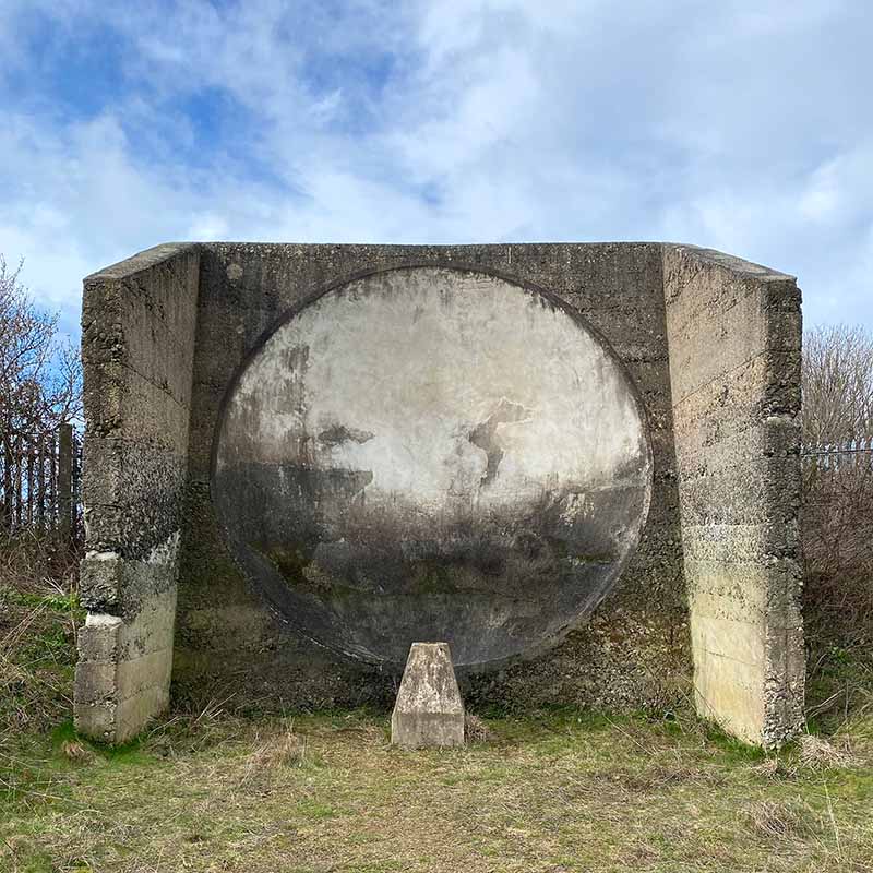 Sound mirrors were large concrete dishes that were built around Britain’s coast to listen out for the threat of approaching Zeppelins in the First World War. The sound of the Zeppelin’s engines would be reflected by the concave dish and focused at its centre. An operator would then use a stethascope type device attached to a metal trumpet to listen to the reflected sounds and give an early warning to people along the coast.